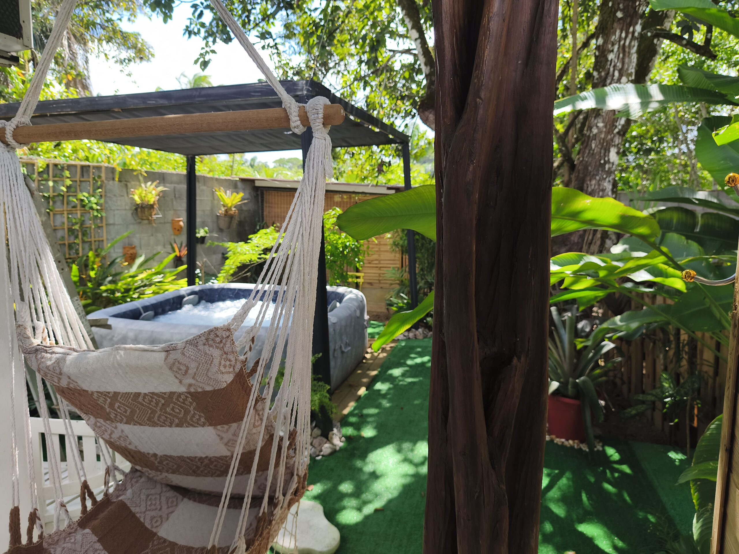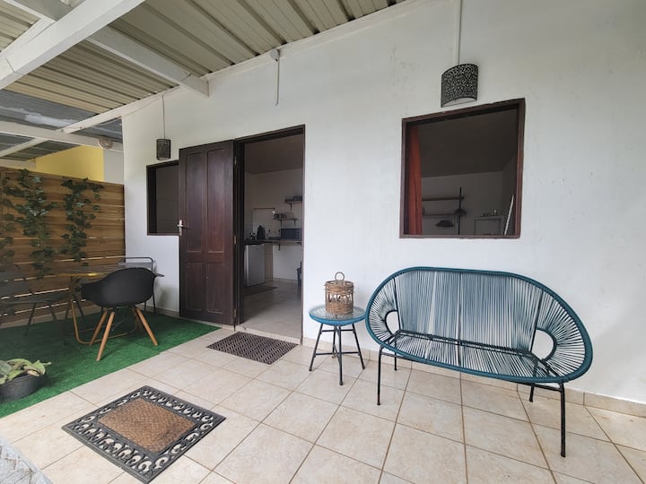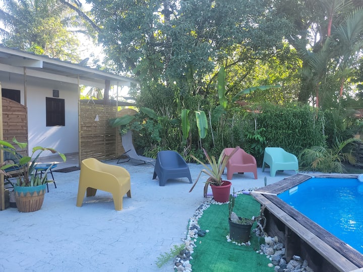 La Douce Escale à Matoury vous accueille dans un studio cosy avec tout le confort : chambre douillette, cuisine équipée, salle de bain moderne et terrasse. Profitez de votre jacuzzi privatif, d’un jardin tropical reposant et d’un accès à la piscine. Un véritable havre de paix pour un séjour en couple ou en solo, proche de toutes commodités.